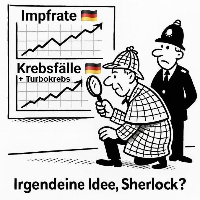 Impfrate – Krebsfälle + Turbokrebs. Irgendeine Idee, Sherlock?