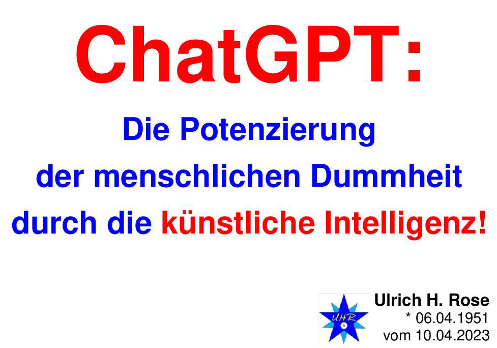 ChatGPT. Die Potenzierung der menschlichen Dummheit durch die künstliche Intelligenz. Ulrich H. Rose vom 10.04.2023