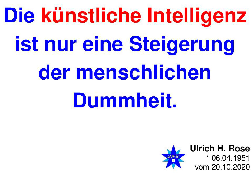 Die künstliche Intelligenz ist nur eine Steigerung der menschlichen Dummheit. Ulrich H. Rose vom 20.10.2020